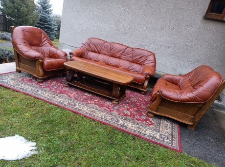 XXL Kožená rustikální sedací souprava 3 - 2 - 1 , stolek .