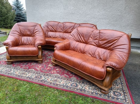 XXL Kožená rustikální sedací souprava 3 - 2 - 1 , stolek .