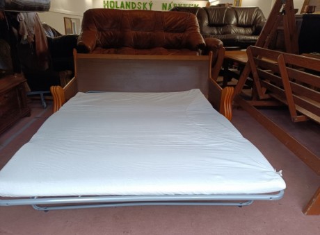 Rustikální kožená sedací souprava 3 - 1 - 1 - 2 X taburet - rozkládací .