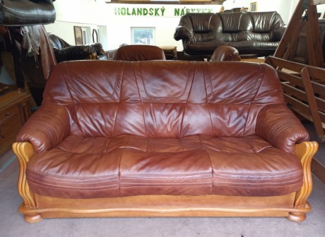 Rustikální kožená sedací souprava 3 - 1 - 1 - 2 X taburet - rozkládací .