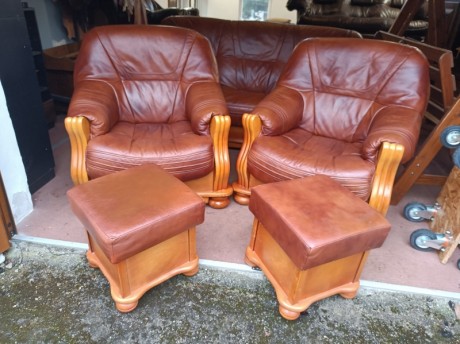 Rustikální kožená sedací souprava 3 - 1 - 1 - 2 X taburet - rozkládací .