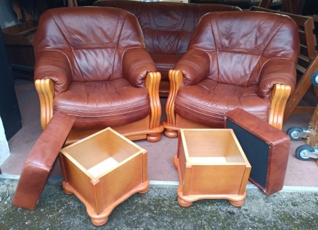 Rustikální kožená sedací souprava 3 - 1 - 1 - 2 X taburet - rozkládací .
